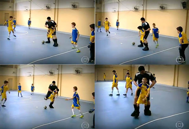 | O pai de Felipe desenvolveu uma bota especial para jogarem bola juntos (Imagem: Fantástico) |