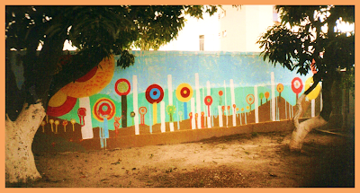 Muro da escola pintado pelos alunos e familiares