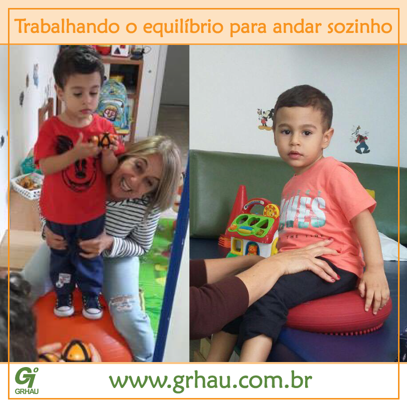 Quando a criança já está quase andando, trabalhamos muito o equilíbrio, colocando em superfícies instáveis e desafiadoras, para que ela busque seu eixo de equilíbrio e fortaleça a musculatura responsável por mantê-la na posição.